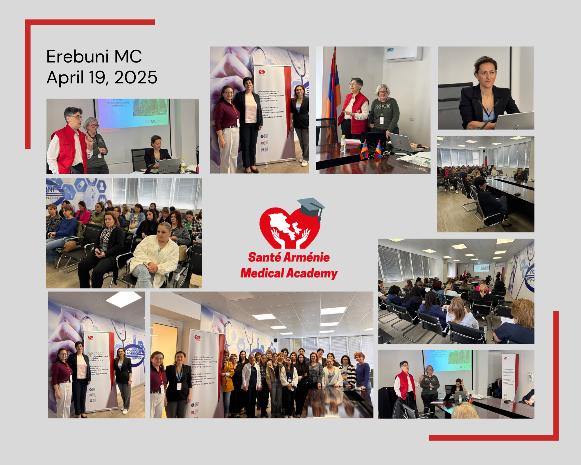 2025թ․ ապրիլին «Santé Arménie» բժշկական ակադեմիան իրականացրեց լայնածավալ կրթական առաքելություն՝ նվիրված բուժքույրերի շարունակական կրթությանն ու մասնագիտական կարողությունների զարգացմանը։ Առաքելության ընթացքում մեր թիմը, միջազգային և տեղական գործընկերների աջակցությամբ, այցելեց Գյումրի, Սիսիան և Երևան՝ կազմակերպելով տեսական և գործնական ուսուցումներ ավելի քան 750 բուժքույրերի համար Հայաստանի տարբեր բժշկական կենտրոններից։