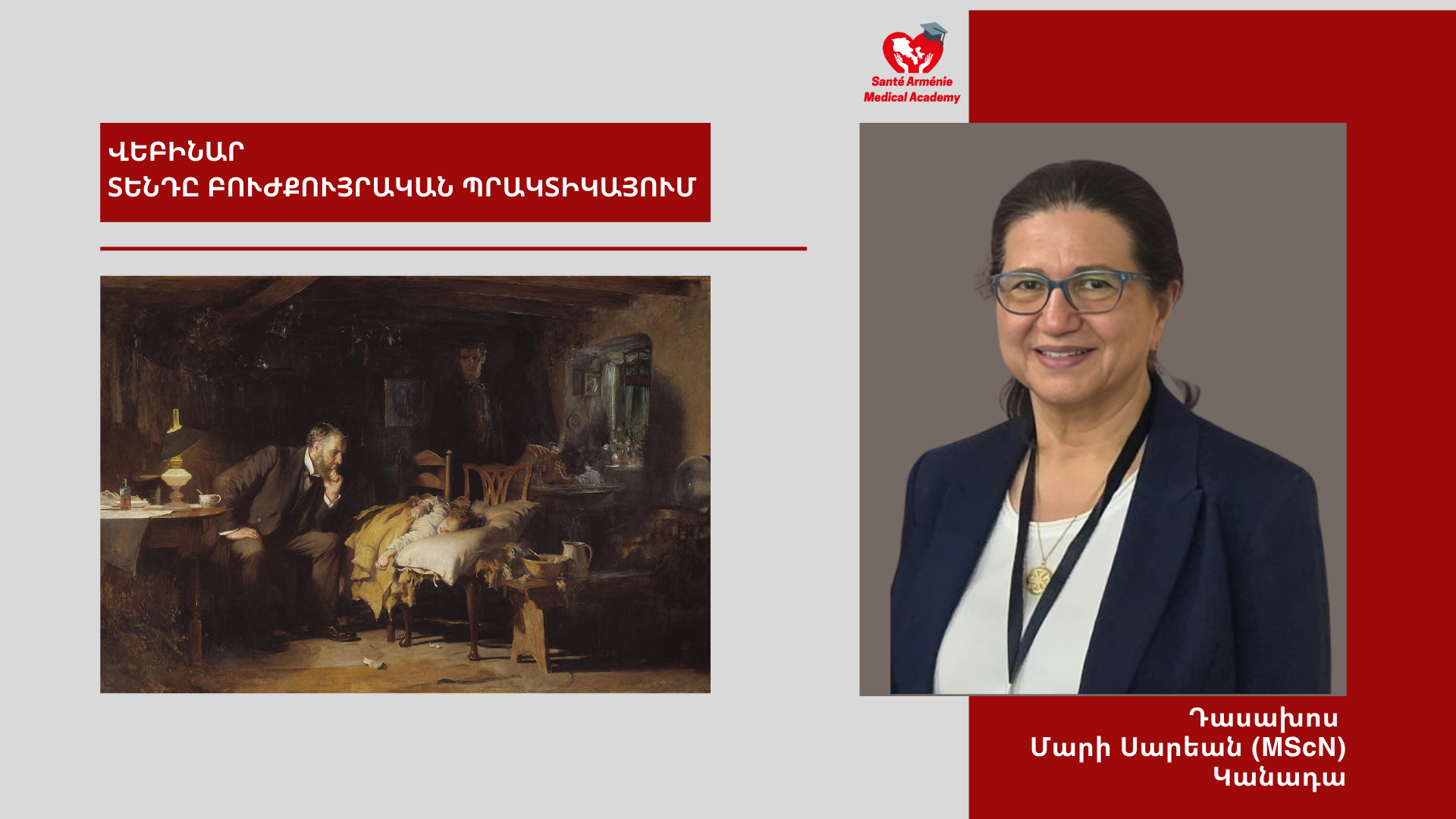 Դասախոս – Մարի Սարեան, Ծավալը – 2 ժամ վիդեոդասախոսություն, ՇՄԶ կրեդիտների քանակը – Թիրախային լսարանը – բուժքույրեր, մանկաբարձներ Լեզուն – Հայերեն:
