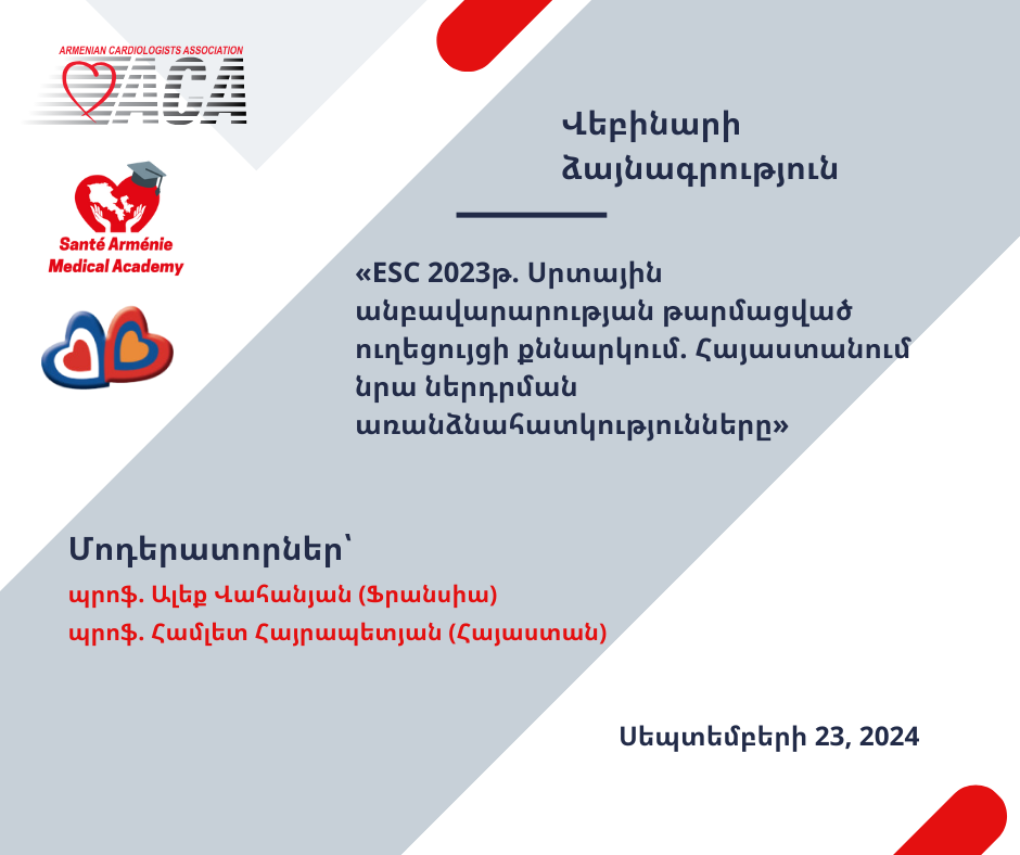 «ESC 2023թ. Սրտային անբավարարության թարմացված ուղեցույցի քննարկում. Հայաստանում նրա ներդրման առանձնահատկությունները»