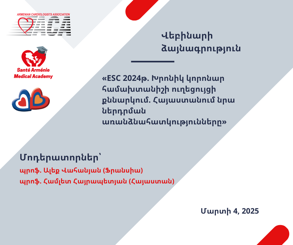 «ESC 2024թ. Խրոնիկ կորոնար համախտանիշի ուղեցույցի քննարկում. Հայաստանում նրա ներդրման առանձնահատկությունները»
